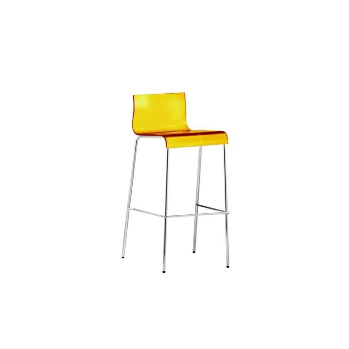 Moderní italská plastová barová židle s kovovou podnoží. Sedák židle je vyroben z průsvitného acrylu v několika barevných provedeních. Podnož je vyrobena z ocelových chromovaných profilů o průměru 16 mm. Moderní jednoduchý tvar židle umožňuje široké využití. Je vhodná do bytu pro svoji snadnou údržbu, ale také do restaurací, jídelen, bister. Židle je snadno skladovatelná díky možnosti stohování (až 4 kusů) Nerezové provedení umožňuje venkovní využití židle.