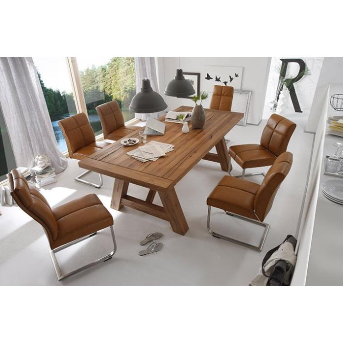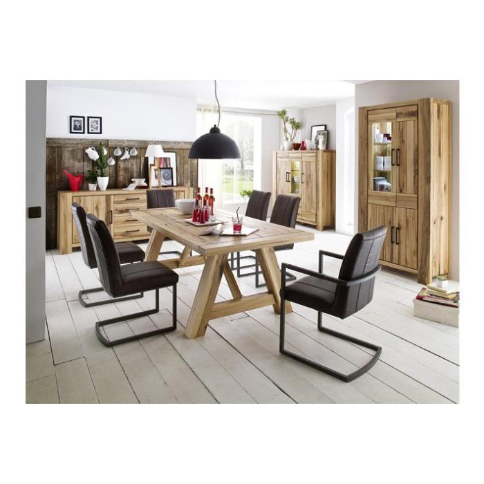 Masivní jídelní stůl z dubového dřeva ve třech odstínech - dub divoký, bělený, dub bassano (tmavší). Stůl je ručně vyráběný, proto je každý kus originál. Deska stolu imituje známku opotřebení a proto je každý kus stolu jedinečný. Ruční výroba trhlin, průduchy, boule, díry, barevné rozdíly jsou chtěné a dávají stolu atmosféru. Nosná konstrukce nohou je zhotovena rovněž z dubového masivu. Stůl lze skvěle kombinovat s různými typy židlí, fantazii se meze nekladou.
