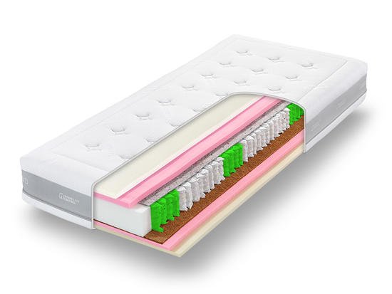 Hebkost latexu, vzdušnost studené pěny, stabilita kokosové desky a maximální komfort. Vzdušnost, vynikající ortopedické vlastnosti, komfort spánku a odolnost. Pratelný potah s přírodními vlákny.
