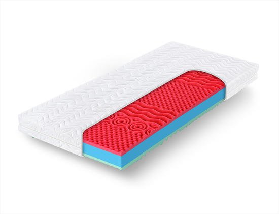 Odolná a maximálně pružná matrace s ortopedickými vlastnostmi s rozdílnou tuhostí ložných ploch a masážní profilací vyhoví širokému spektru uživatelů.