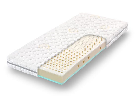 Vysoce kvalitní sendvičová matrace ŠÁRKA, jejíž jádro je tvořeno latexovými deskami vyztuženými odolnou Flexifoam pěnou s vysokou elasticitou. Tato kombinace zajišťuje optimální oporu páteře a vynikající ortopedické vlastnosti. Ložné plochy z latexu s jemnou perforací pro pohodlí a uvolnění svalstva. Odolná „dětskému hopsání“.