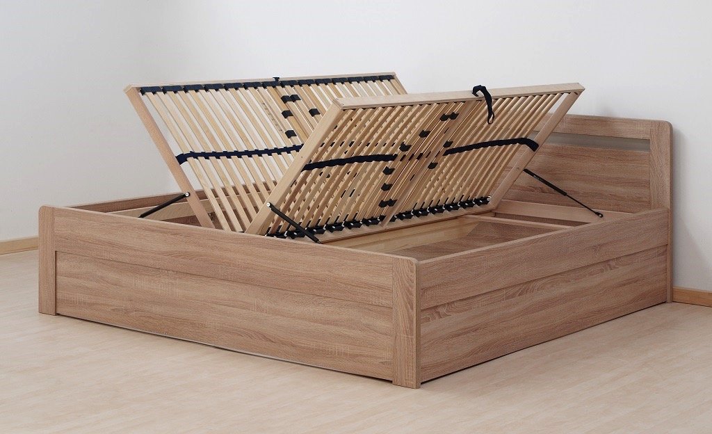 Praktická a nadčasová postel s úložným prostorem v ceně. Postel je precizně propracovaná a vytváří v interiéru pocit dokonalé harmonie.