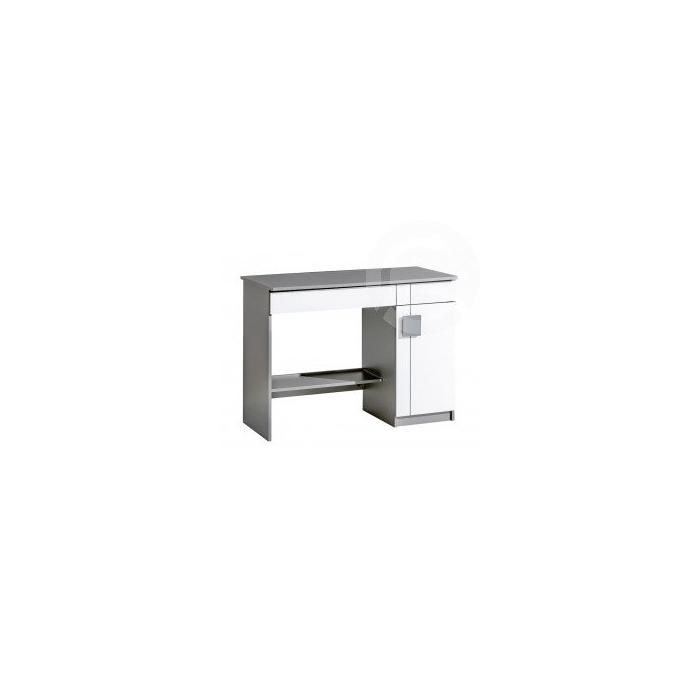 Pracovní stůl. Úchyty jsou vyrobeny z plastu. Barevné provedení je buď dub santana, úchyty a dekorace jsou v barvě šedá nebo antracit s bílou matnou barvou briliant. Úložný prostor obsahuje polici. Nábytek je vyrobený z kvalitní laminátové desky. Dodáváme v demontovaném stavu.