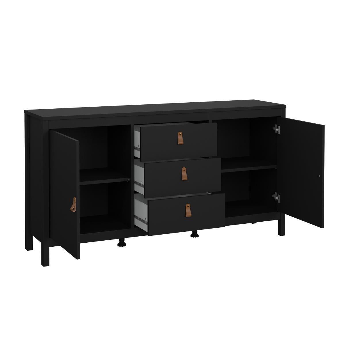 příborník, šířka 152 cm, 2 dvířka, 3 zásuvky, 2 nastavitelné police, 2 druhy úchytek v ceně