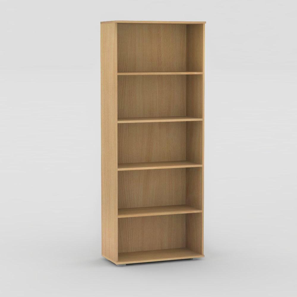 Široký kancelářský regál se čtyřmi policemi. Kancelářský regál je navržen pro každodenní práci v kanceláři. . Regál do kanceláře se čtyřmi policemi je vyroben z kvalitní laminované dřevotřískové desky. Ve spodní části se nacházejí šikovné nožičky.
