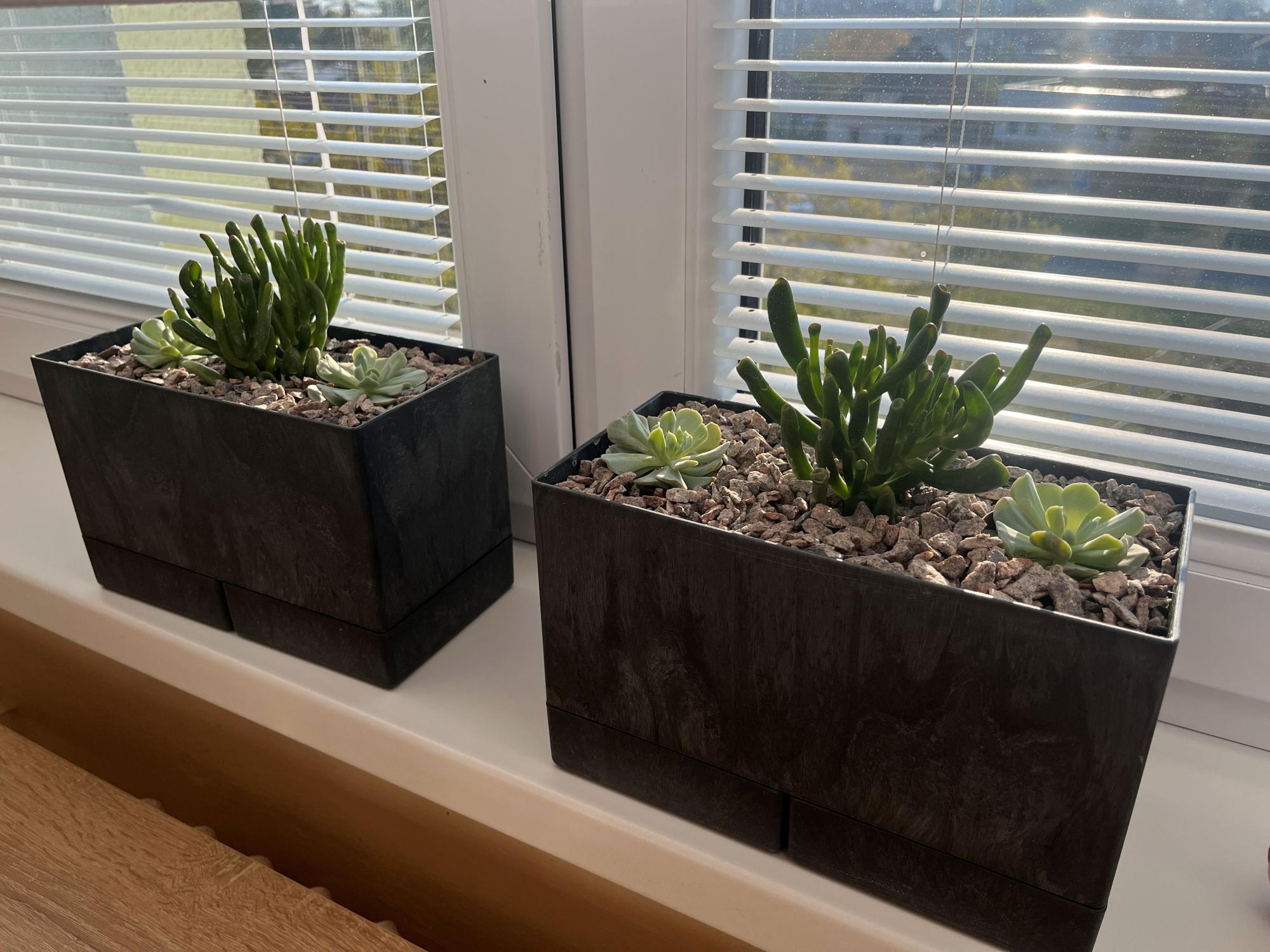 Truhlík je potřeba doplnit dvěma miskami Flexi Element. Misky plní funkci podmisky pod květináčem. Zachytávají přebytečnou vodu a brání jejímu odtékání. To pomáhá udržet vhodnou vlhkost substrátu.