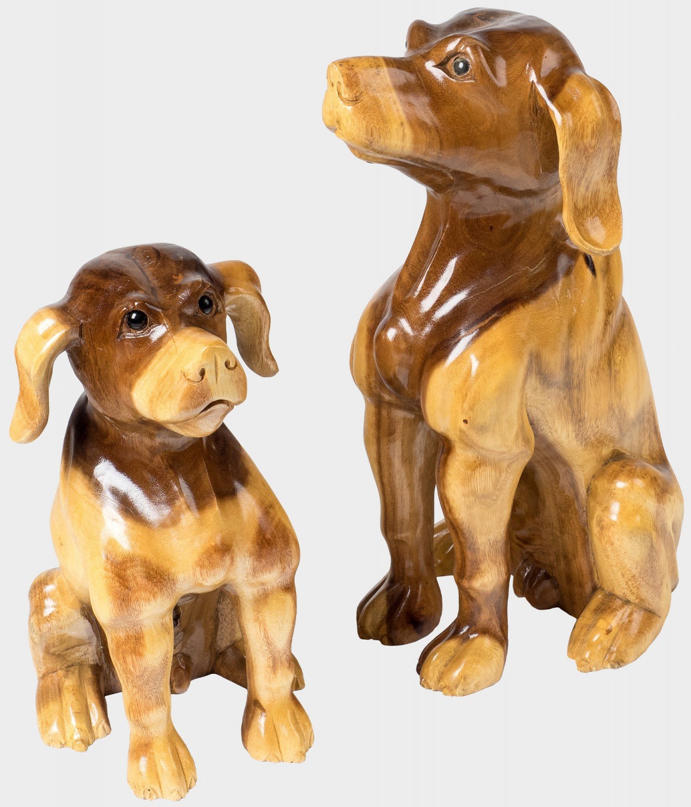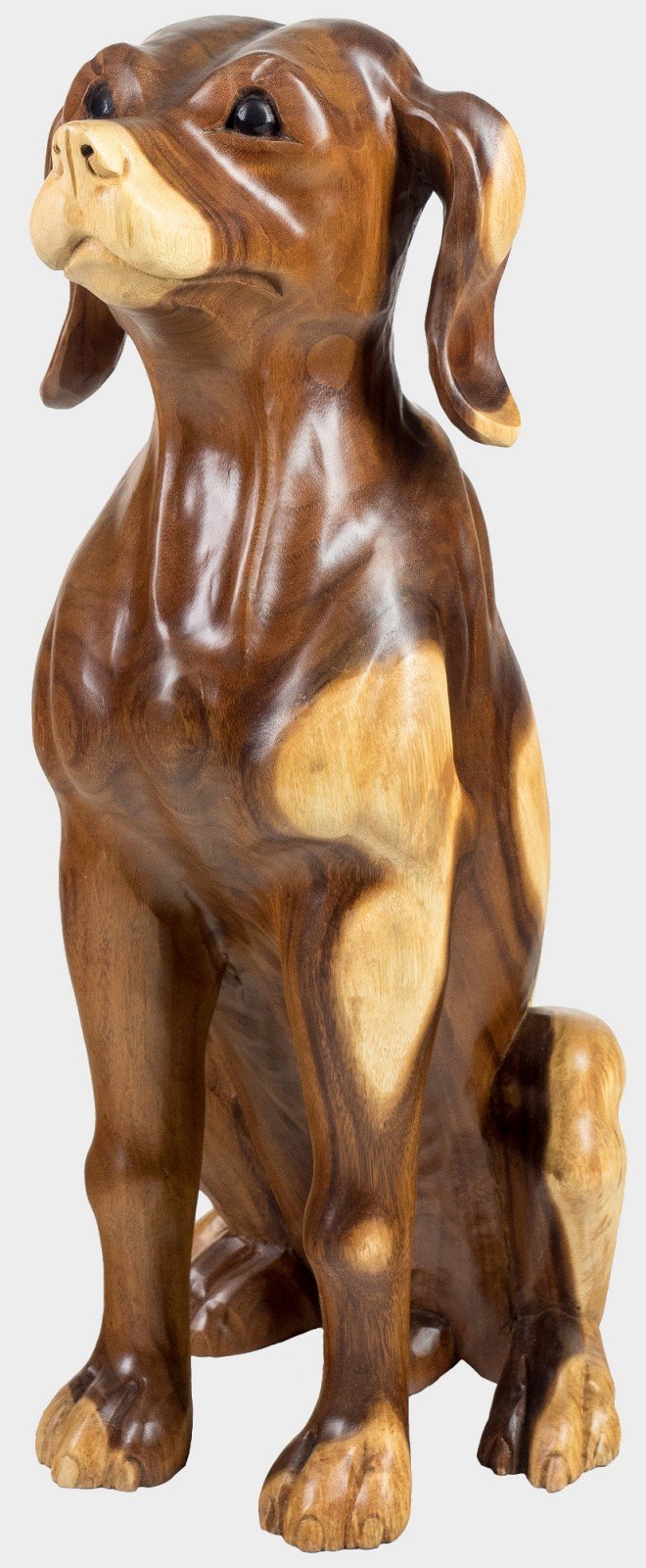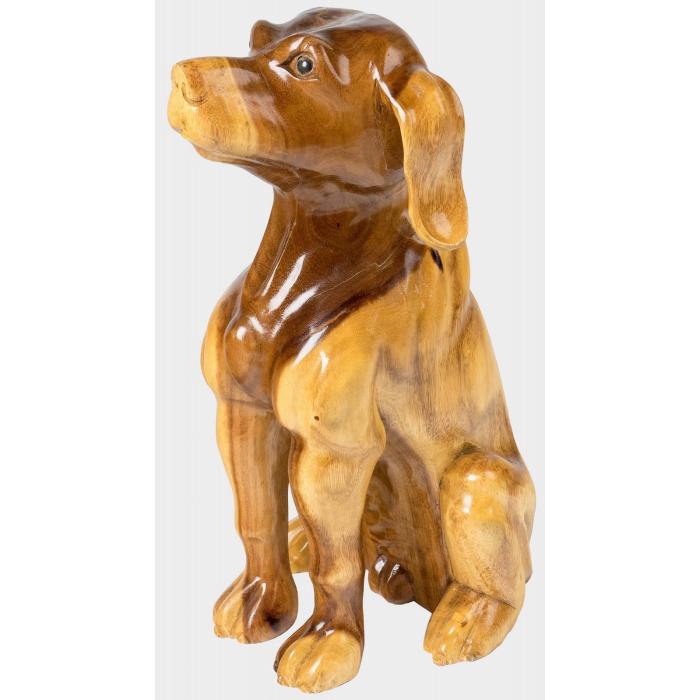 Dřevěný teakový pes je opravdu veliký, ručně vyráběný. Lakovaný.