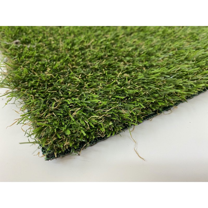Materiál polyethylenu a polypropylenu a tato kombinace materiálů zajišťuje, že je tento umělý trávník odolný proti povětrnostním vlivům a velmi pevný. Další výhodou je odolnost vůči UV záření, díky které se koberec nevyšisuje., výška vlasu 35 mm.