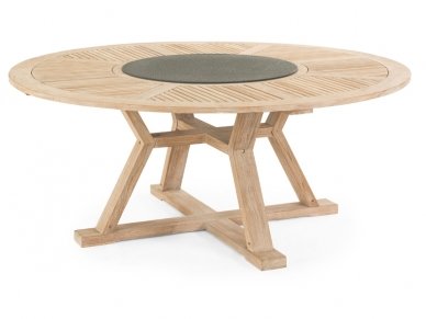 Luxusní dřevěný zahradní stůl CIRCUSS vyrobený z teakového dřeva je velmi stabilní, součástí stolu je servírovací otáčivá deska z umělého kamene. Stůl je vhodný jak do exteriéru tak interiéru nebo zimní zahrady. Při venkovním používání doporučujeme stůl 1-2x do roka ošetřit teakovým olejem.